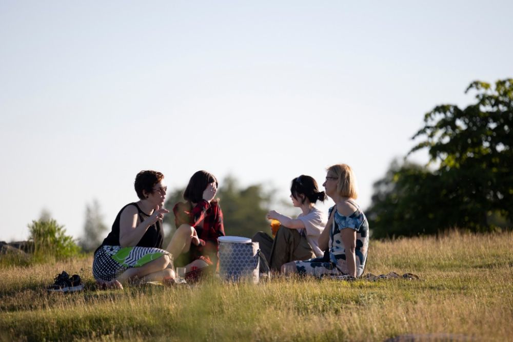 2022年6月24日,在芬兰赫尔辛基卡伊沃公园,人们结伴庆祝仲夏节。新华社发(马蒂·马蒂凯宁摄)