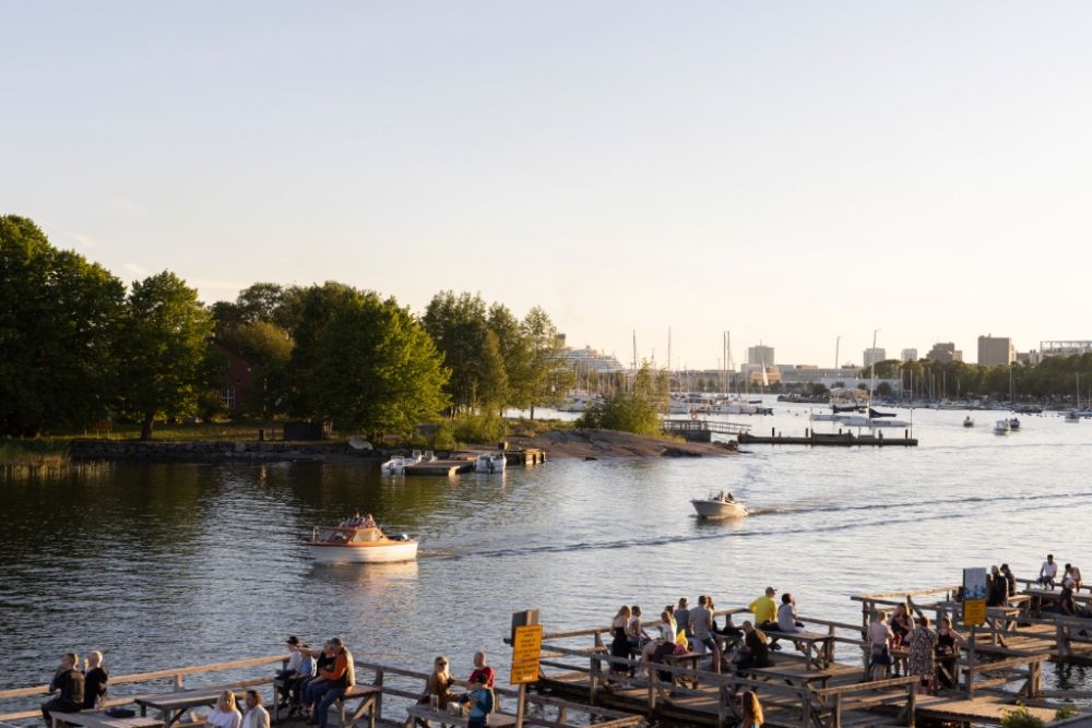 2022年6月24日,在芬兰赫尔辛基卡伊沃公园,人们在海边庆祝仲夏节。新华社发(马蒂·马蒂凯宁摄)